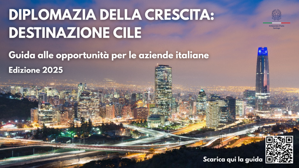 Desde hoy es posible descargar el documento “Diplomacia del crecimiento: destino Chile”, una guía sobre las oportunidades para las empresas italianas interesadas en el país.
