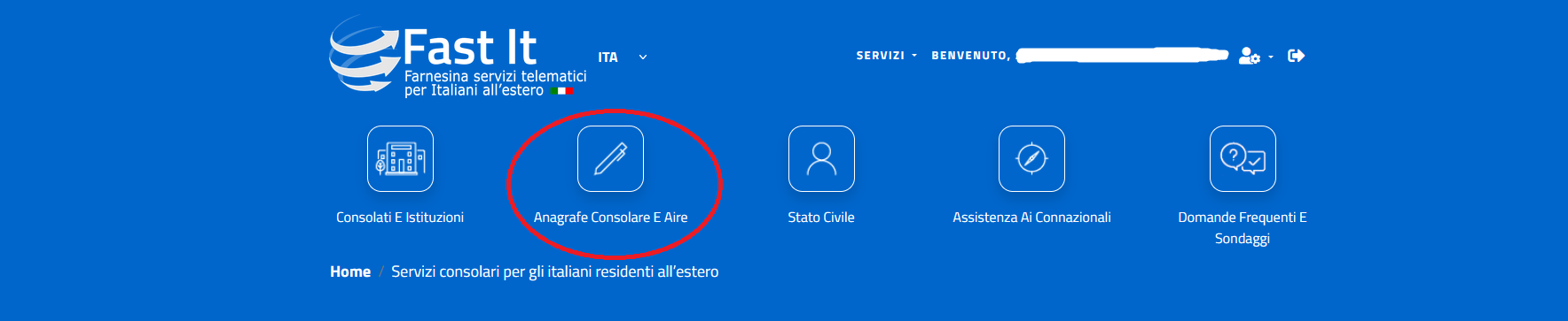 Tras crear y activar su cuenta, deberá acceder al portal Fast It y elegir la opción «Solicitar la inscripción en el Registro de Italianos en el Extranjero» y seguir las instrucciones.